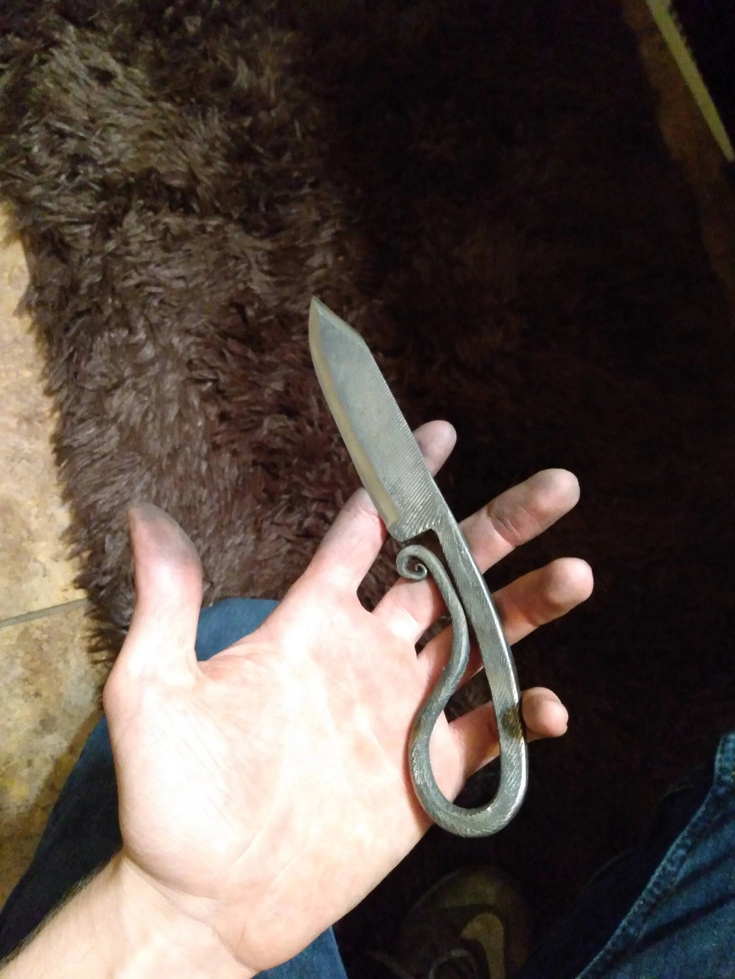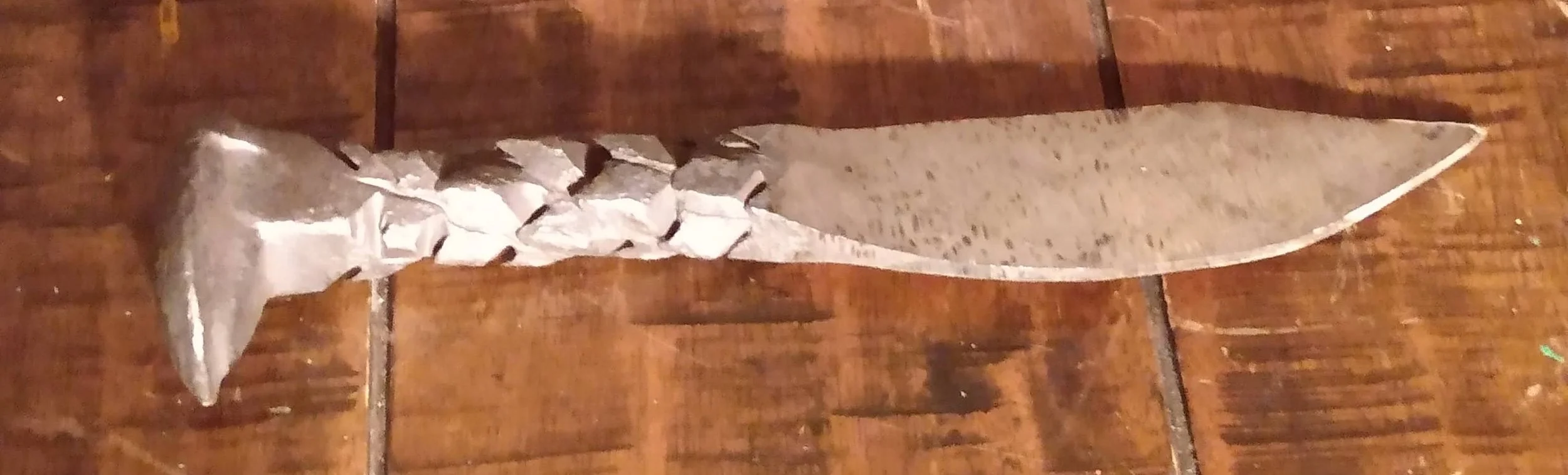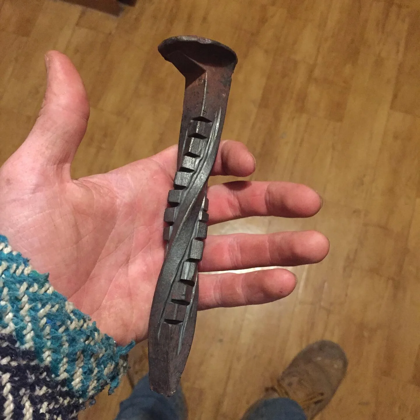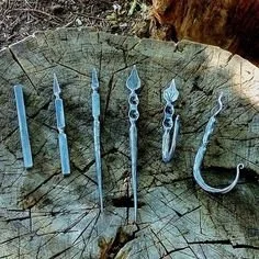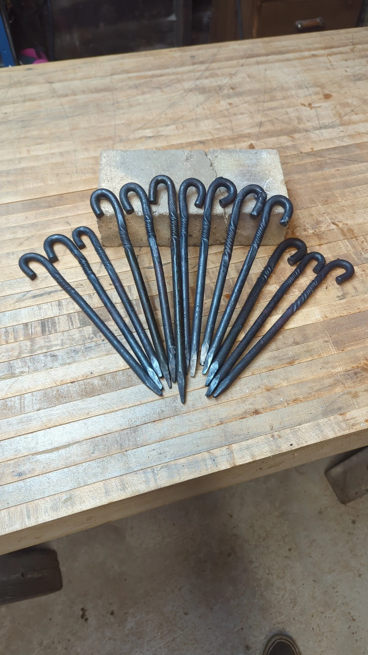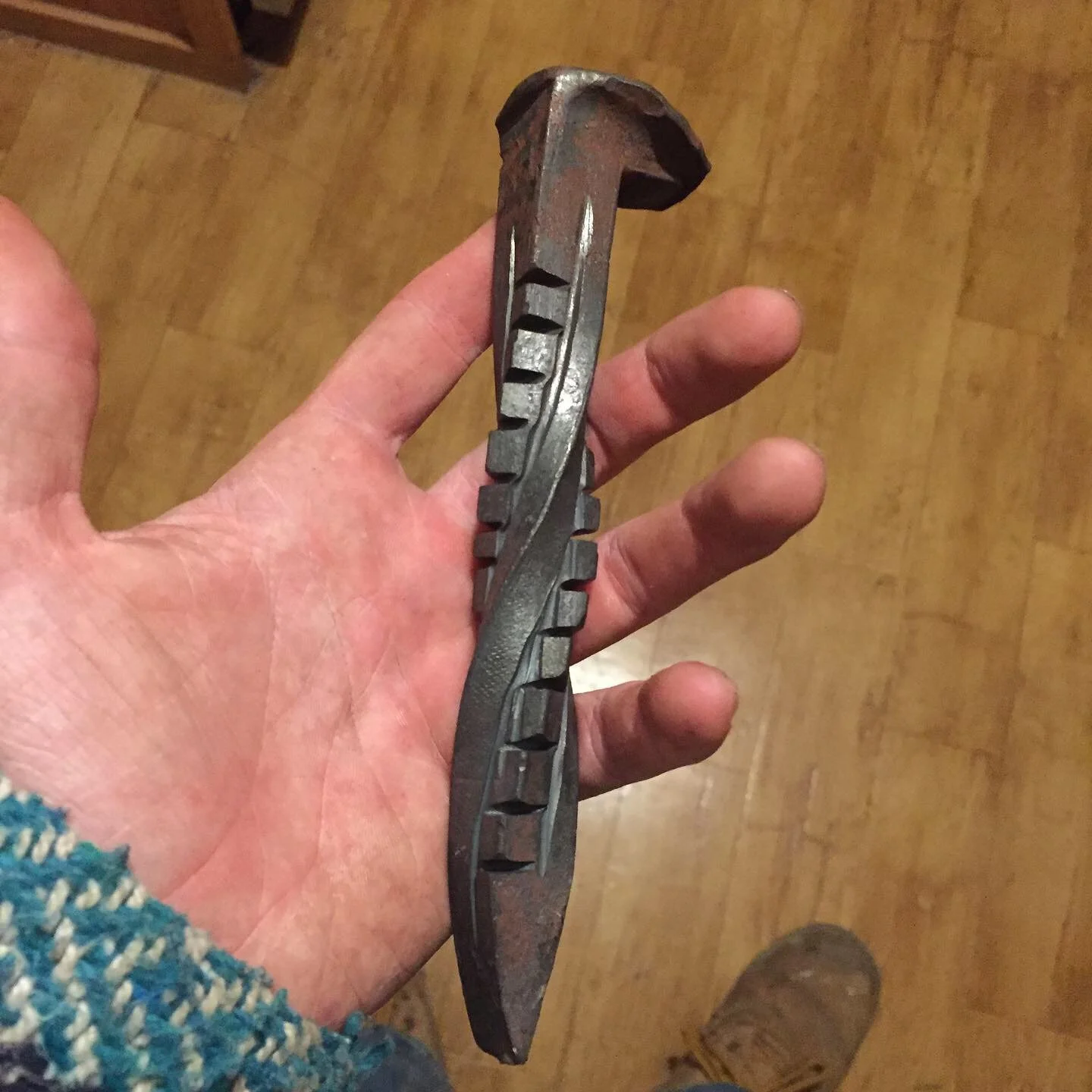 Tent Stakes $100.00 Steel Rose's $45.00 Hand Forged ball Punched Hooks $9.75 Damascus kiridashi $35.00 Snake File $15.00 RR Spike Knife with Dragon Scale Twisted Handle $22.00 RR Spike Hatchet $39.50 Forged leaves $4.75 Viking Style File Knife $15.00 Decorative Twisted Rail Road Spike Sale Price: $3.25 Original Price: $6.00 Sale